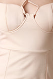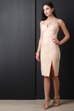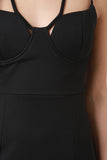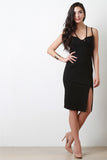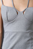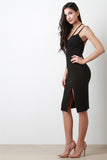 This stylish midi dress features a sweetheart neckline with crisscrossing spaghetti shoulder straps, molded cups with underwire support, sleeveless construction, and front slit detail. Accessories sold separately. Made in U.S.A. 68% Cotton, 27% Polyester, 5% Elastane.