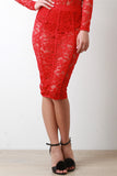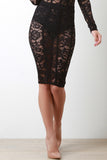 This pencil skirt features a semi-sheer floral lace fabrication, wide elasticized waist, stretchy sculpture fit, and vertical trimming finish. Made in U.S.A. 95% Polyester, 5% Spandex. Contrast: 95% Rayon, 5% Spandex.