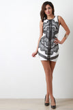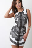 This sleeveless dress features a round neckline, eyelash lace top stitch front, contrasting back, and a hidden zipper fastener at back. Accessories sold separately. 95% Polyester, 5% Spandex.