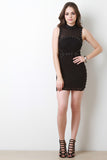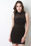 This dress features a patterned lace throughout, mesh paneled, and figure-flattering detailed lining. Finished with a jersey underlay and two hooks at nape for easy on/off. Accessories sold separately. Self: 70% Cotton, 30% Nylon. Contrast: 100% Polyester. Lining: 95% Rayon, 5% Spandex.