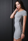 This cute casual dress features a ribbed knit fabrication, round neckline, and short sleeve construction. Finished with a detailed lining on sides, and round hemline. Accessories sold separately. Made in U.S.A. 95% Rayon, 5% Spandex.