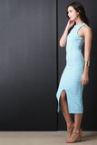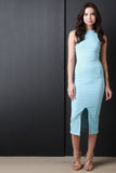 This midi length hemline with front slit. Accessories sold separately. Made in U.S.A. 96% Polyester, 4% Spandex.