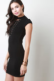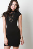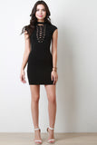 This sophisticated lace-up detail at front, cap sleeves, stretchy sculpture fit, and mini-length hem. Accessories sold separately. 95% Rayon, 5% Spandex.