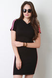 This cute and casual dress features jersey knit, hooded neckline, short sleeves, and double striped sides. Accessories sold separately. Made in U.S.A. 94% Cotton, 6% Spandex.