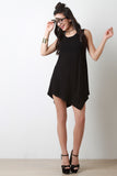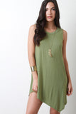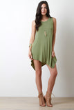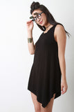 This edgy dress features a sleeveless design, rounded neckline, soft knit fabrication, made from bamboo fibers, relaxed fit, finished with an asymmetrical hemline. Accessories sold separately. Made in U.S.A. 96% Viscose from bamboo, 4% Spandex.