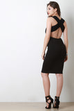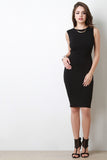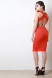 This sleeveless midi dress features a crisscross back design, round neckline, and stretchy sculpture fit. Accessories sold separately. 94% Cotton, 6% Spandex.