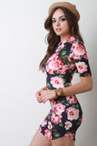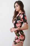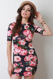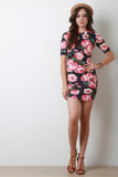 This cute rose print , stretch knit fabrication, mock neckline, half sleeves, a bod hugging fit, finished with a rounded hemline. Accessories sold separately. 95% Polyester, 5% Spandex.