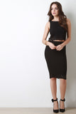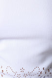 This sleeveless top features a texture knit fabrication, high round neckline, scoop back, scallop hemline and eyelet design accent. Accessories sold separately. Made in U.S.A. 96% Polyester, 4% Spandex.