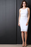 This skirt features a texture knit fabrication, elasticized waist with a zipper fastener at back, sculpture fit, and scallop hemline with eyelet accent. Accessories sold separately. Made in U.S.A. 96% Polyester, 4% Spandex.