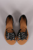 This breezy flat features an open toe silhouette, strappy woven design upper, and easy slip-on construction.
