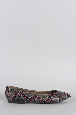 This comfy loafer flat features a woven design at toe, crocodile print vegan leather upper with partial elastic insert, braided espadrille accent along the edge, and cushioned insole for comfort.