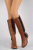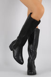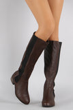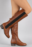 These knee high boots feature a round toe silhouette, elasticized side panel, stitching accents, and low heel. Finished with cushioned insole, soft faux fur interior lining, and full-length side zipper closure for easy on/off.