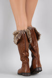 These faux fur cuff design, rounded toe, top stitching accents, and stacked block heel. Finished with cushioned insole, soft faux fur interior lining, and rear zipper closure for easy on/off. Unfold the cuff for completely different looks!