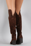 These over the knee length. Light faux fur lining. Finished on stacked heel.