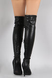 These stiletto over-the-knee length. Features a mid-way inner side zipper. Light fabric lining.