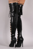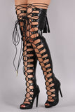 These lace up front, nail head studs detail, and wrapped stiletto heel. Finished with lightly padded insole and rear zipper closure for easy on/off.
