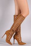 These fashionable pointy toe silhouette, geometric cutout design shaft, and stiletto heel. Finished with lightly cushioned insole and back-zip closure.