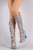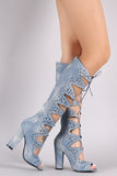 These stunning lace up closure. Also features a peep toe silhouette, chunky wrapped heel, and full-length rear zipper closure. Finished with cushioned insole for comfort.