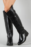 This trendy boot features a round toe silhouette, slit detail at the back with buckle strap detail, side zipper closure, and low stacked heel. Finished with soft padded insole for extra comfort.