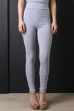 This high waist leggings features a jersey knit fabrication, elasticized waistline, and stretchy taper cut legs. Accessories sold separately. Made in U.S.A. 92% Cotton, 8% Spandex.