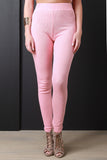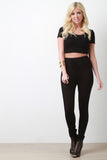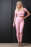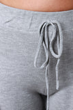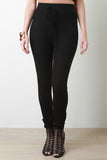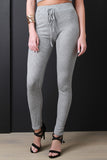 These legging pants features a high waisted design with wide elasticized band, drawstring d�cor, taper cut legs, and thermal knit fabrication. Accessories sold separately. Made in U.S.A. 95% Rayon, 5% Spandex.