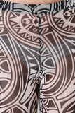 These leggings feature a semi-sheer tribal patterned print throughout, elasticized waistband, and stretchy sculpture fit. Accessories sold separately. Made in U.S.A. 100% Polyester.