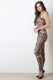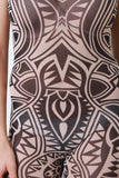 This lightweight mesh fabrication with tribal print throughout, scoop neck with contrast spaghetti shoulder straps, sleeveless construction, and taper cut legs. Accessories sold separately. Made in U.S.A. 100% Polyester.