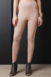 These jersey knit leggings features a high waisted elasticized band, stretchy sculpture fit, and capris crop. Accessories sold separately. Made in U.S.A. 95% Cotton, 5% Spandex.