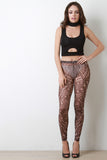 This leggings feature a semi-sheer mesh fabrication, geomatric shapes print pattern, elasticized waistline, and taper cut legs. Accessories sold separately. Made in U.S.A. 100% Polyester.