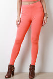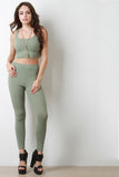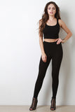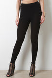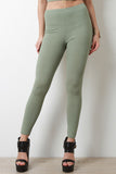 These high waist leggings features a rib knit fabrication, elasticized waistline, and stretchy taper cut legs. Accessories sold separately. Made in U.S.A. 95% Rayon, 5% Spandex.