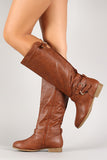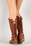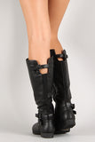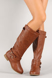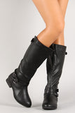 Featuring leatherette upper, thin strap embellishments at ankle, cut out collar with buckled strap, elastic panel at back, stitching detail, almond toe, low heel, fabric interior lining, lightly padded insole, and side zipper closure for easy on/off.