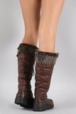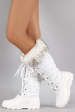These faux fur cuff design, lace up front closure with metallic D-ring eyelets, rounded toe, and low heel. Finished with cushioned insole and soft interior lining for all day comfort.