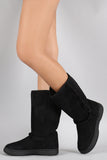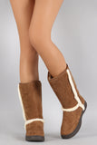 These cozy faux fur trims, round toe silhouette, and low flat heel. Finished with cushioned insole, soft faux fur interior lining, and easy pull on construction.