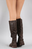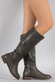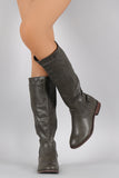 These boots feature a round toe silhouette, studded strap detail, stitching accents, and block heel. Finished with cushioned insole, soft faux fur interior lining, and full-length side zipper closure for easy on/off.