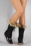 These duck mid calf boots feature a combination of vegan leather/PVC upper with cozy faux fur cuff design, decorative D-ring with lace up closure, and low heel. Finished with cushioned insole and soft interior lining.