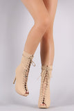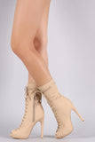 These lace-up front, low platform, and wrapped stiletto heel. Finished with cushioned insole, smooth lining, and size zipper closure.