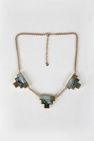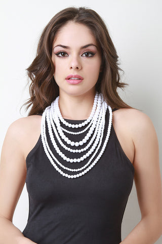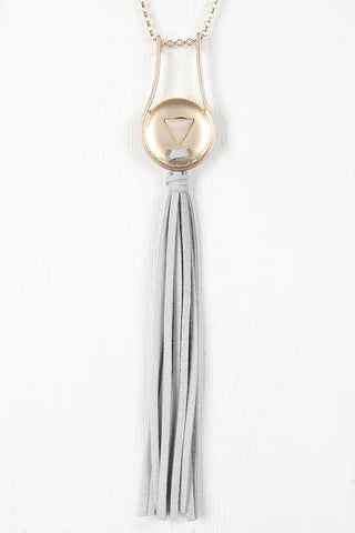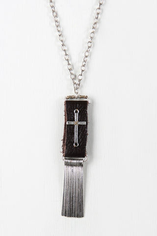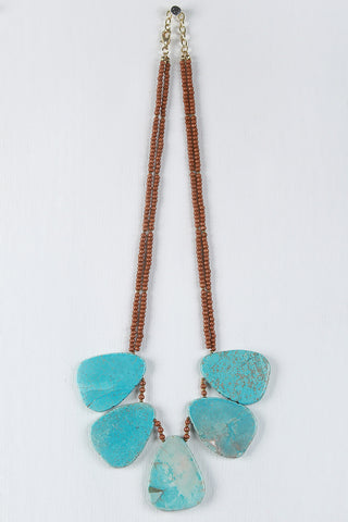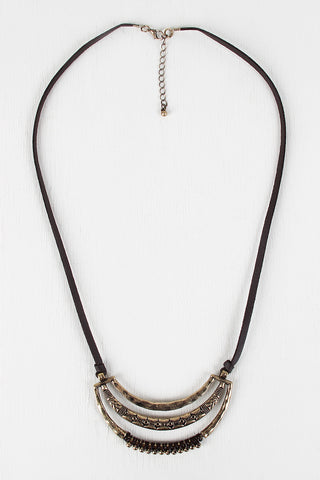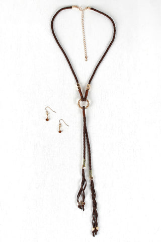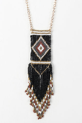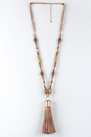 This piece of necklace with several knots around the main strand creating a fringe effect along with patterned beads in the ends of every strand.