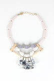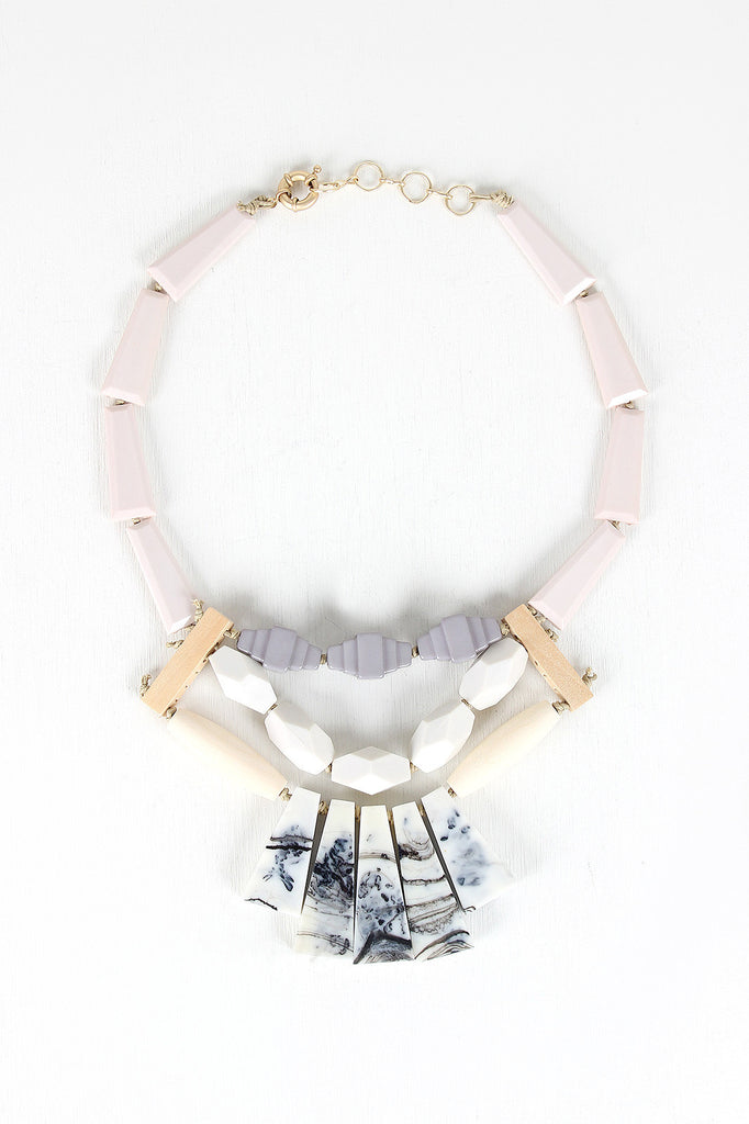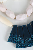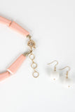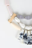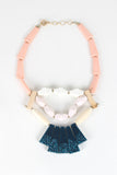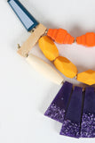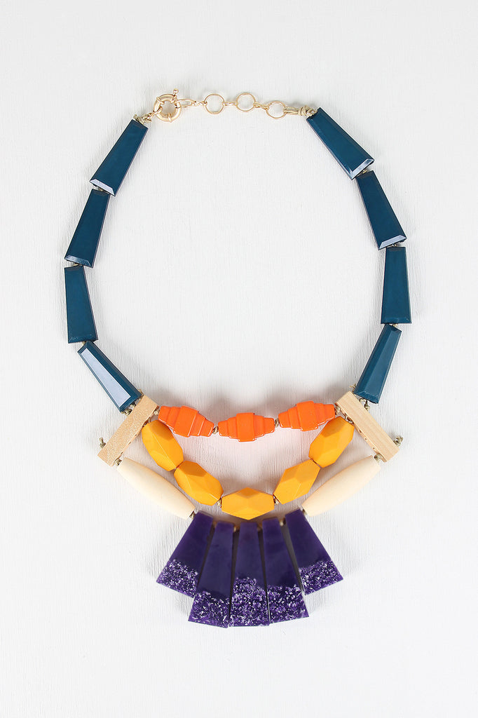This scene-stealing statement necklace features multi-color tiles, beads, and spring ring clasp. Finished with matching earrings.