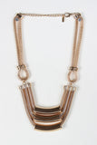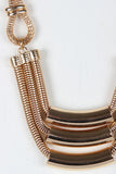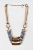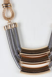 This statement necklace features two types of chain, popcorn and snake style links with large curved metal tube beads. Finished with an adjustable lobster hook closure and includes matching earrings. Lead and nickel free. Measurement