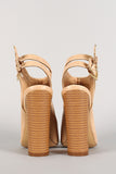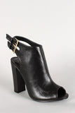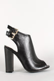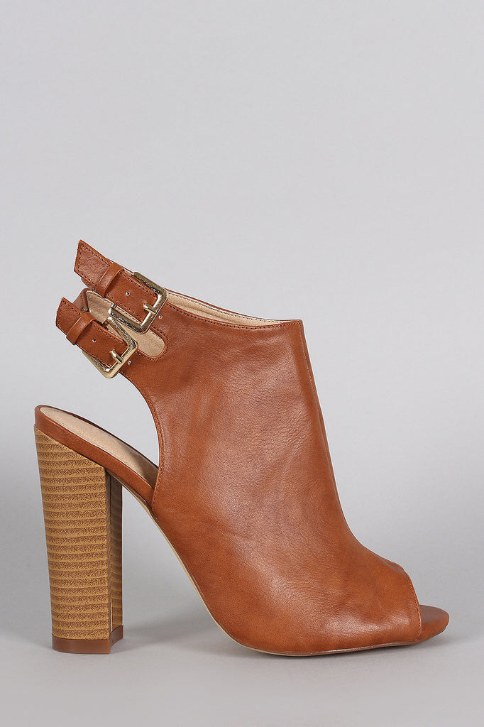 These booties feature a peep toe, back cut-out with double buckle straps closure, chunky stacked heel, and finished with cushioned insole for comfort.