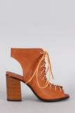 This corseting laces up the vamp. Finished on a chunky stacked heel.
