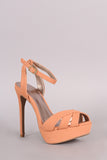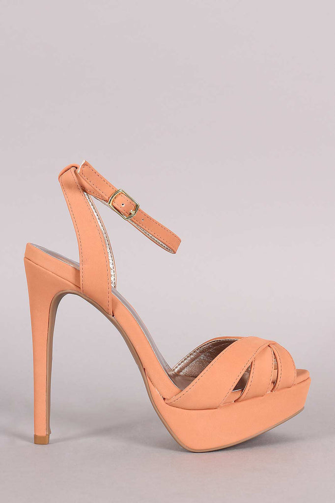 This gorgeous heel features a peep toe, caged design at front, tribute platform, and wrapped stiletto heel. Finished with lightly padded insole and adjustable ankle strap with buckle fastening.