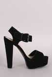 This fabulous heel features an ankle strap with adjustable buckle closure, peep toe silhouette, chunky heel, and wrapped platform. Finished with lightly padded insole for comfort.