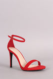 This lovely open toe heel features a single strap across vamp, top stitching accents, and wrapped stiletto heel. Finished with lightly cushioned insole and adjustable ankle strap with buckle fastening.