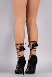 This fashionable tassel accent, and wrapped stiletto heel. Finished with lightly padded insole for comfort.
