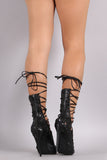 This remarkable lace-up front, and wrapped stiletto heel. Finished with lightly padded insole and back zipper closure.