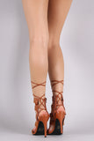 This lovely lace up detail at the back, open toe silhouette, single sole, and stiletto heel. Finished with lightly padded insole and side zipper closure fore easy on/off.
