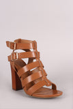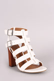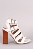 This heel features an open toe silhouette, Woven detail straps, and thick heel. Finished with a lightly padded insole, and a two adjustable side buckle closure. Material: Vegan Leather (man-made) Sole: Synthetic