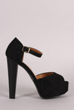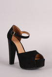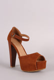 This peep toe heel features a peep toe silhouette, one band with counter ankle strap, and thick heel. Finished with a lightly padded insole, and an adjustable side buckle closure.
