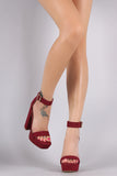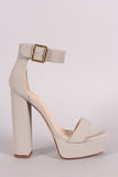This trendy heel features a square open toe silhouette, chunky platform, and wrapped heel. Finished with lightly padded insole and adjustable ankle strap with buckle fastening.